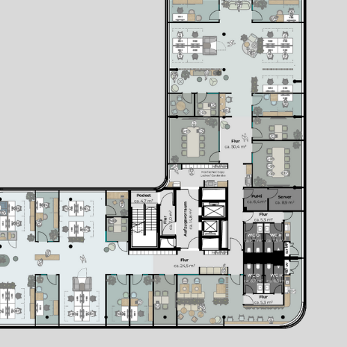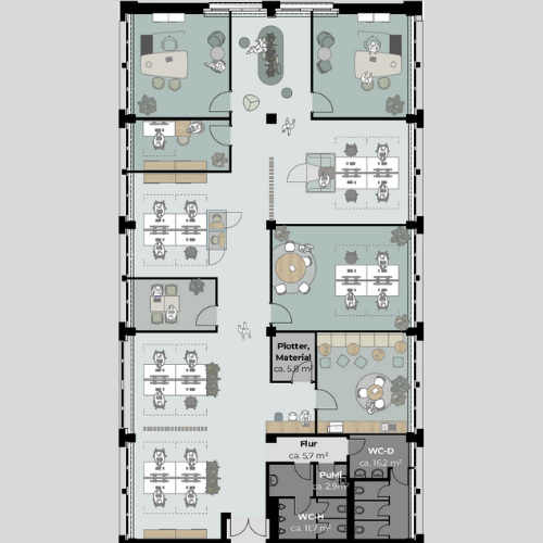Mieterplanungen übersetzen konkrete Anforderungen in nachvollziehbare Flächenlayouts. Arbeitswelten, Abläufe und Nutzungen werden realistisch abgebildet und verständich dargestellt. So entsteht eine belastbare Grundlage für Gespräche, Angebote und Entscheidungen.